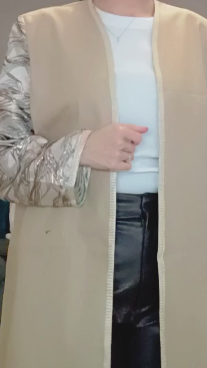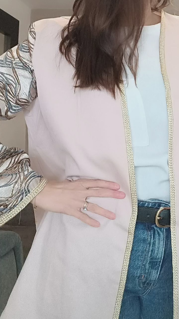 Veste longue bicolore en coton & brocard – Élégance artisanale