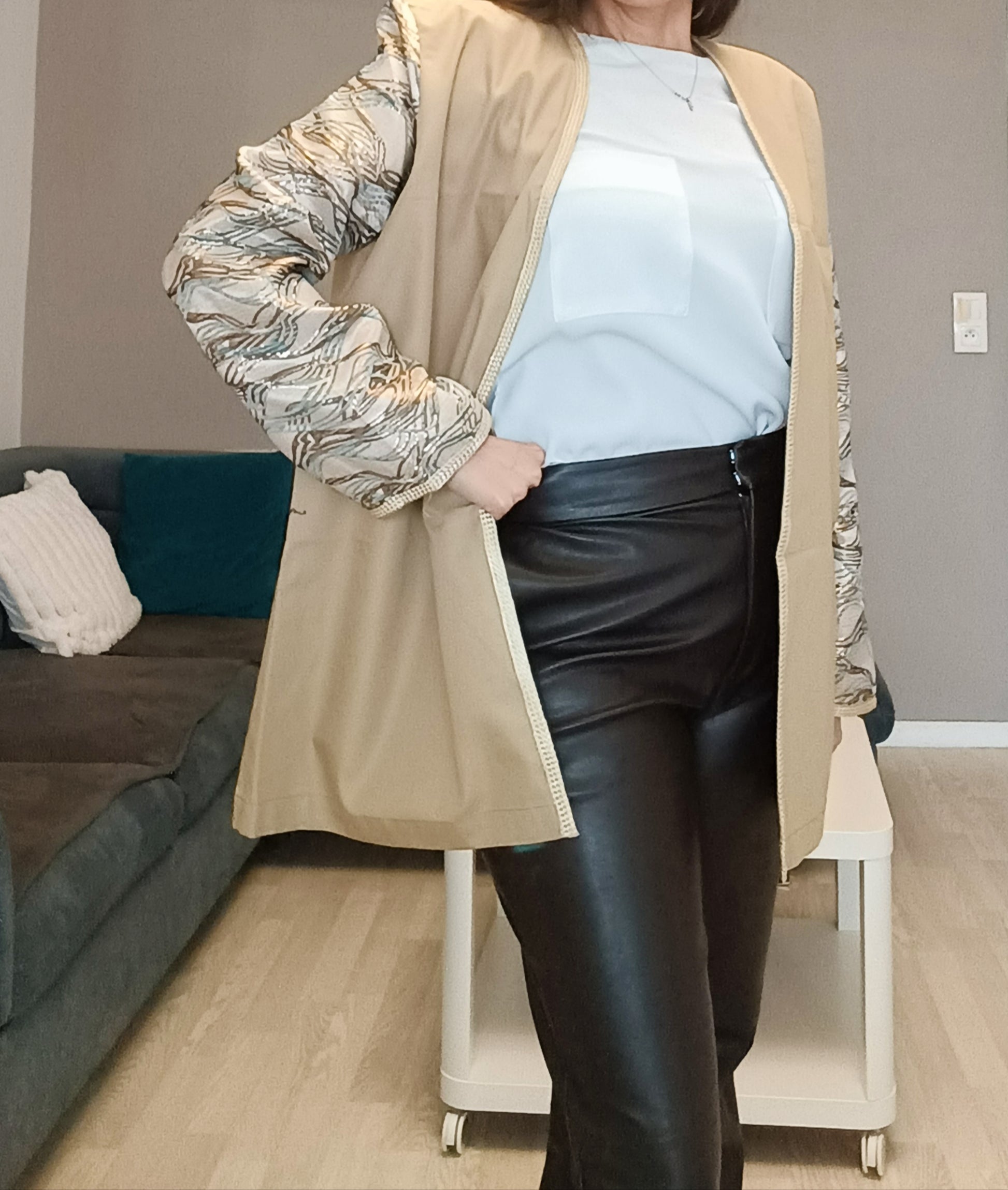 – Beige & manches brocard